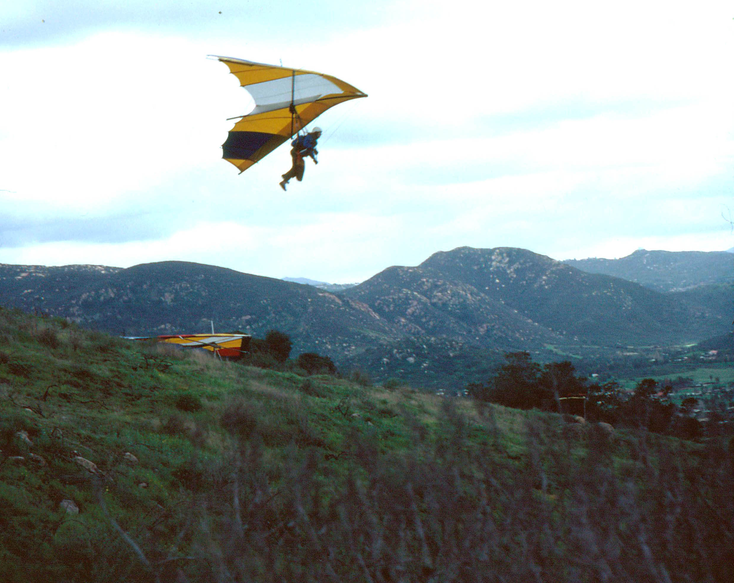 John Mcmanus soaring above launch. Taken mid/late March 1982.