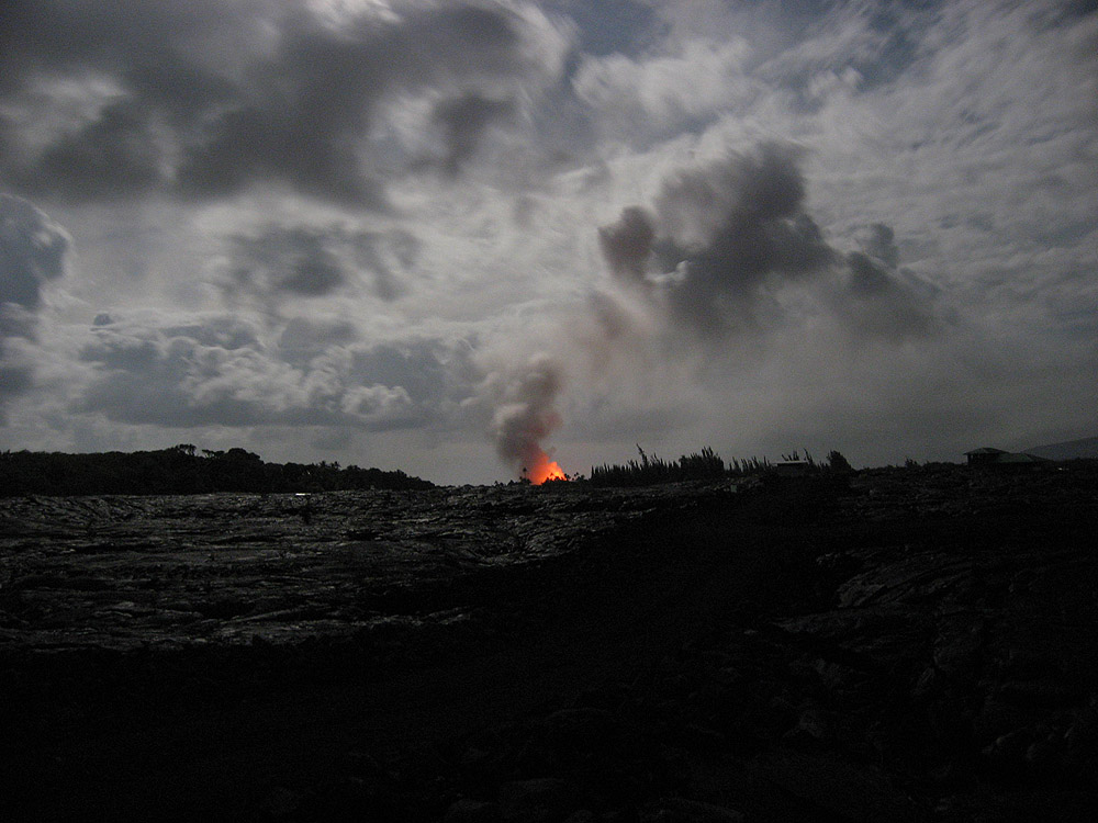 The steam plume can be seen reflecting lava's glow on most nights. This shot