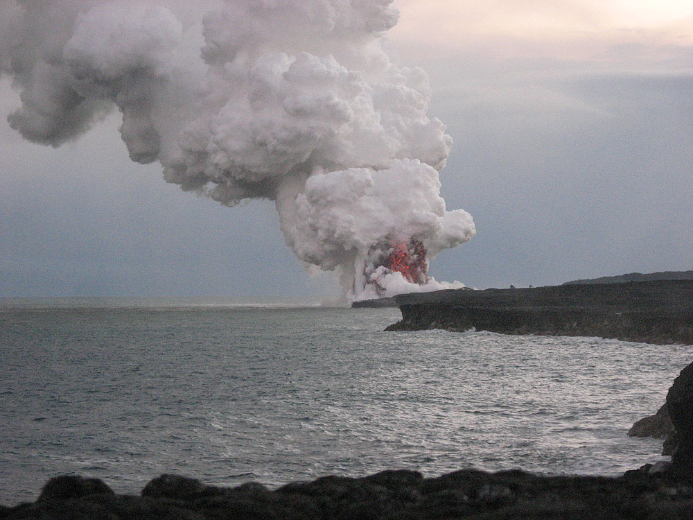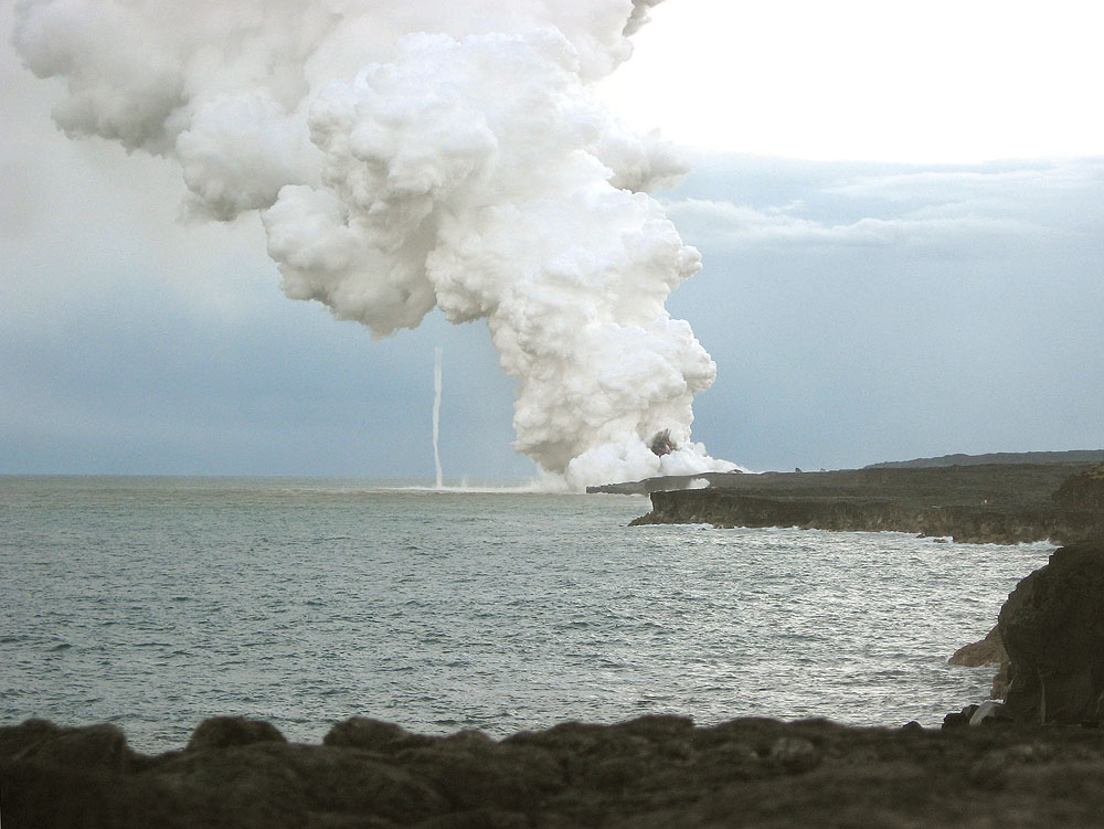 When I returned on 7-14-08, I saw a newly-formed mound near the lava ocean entry.